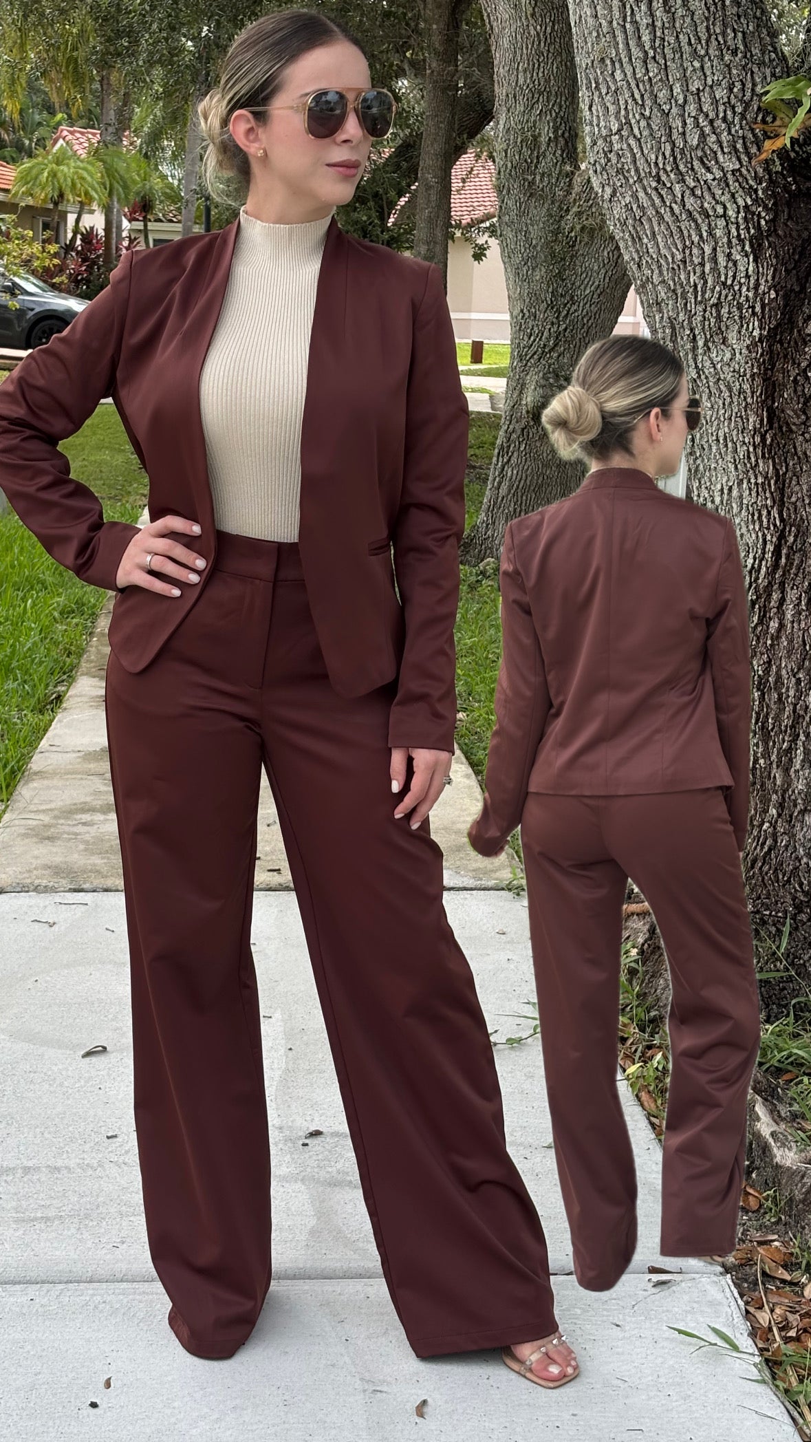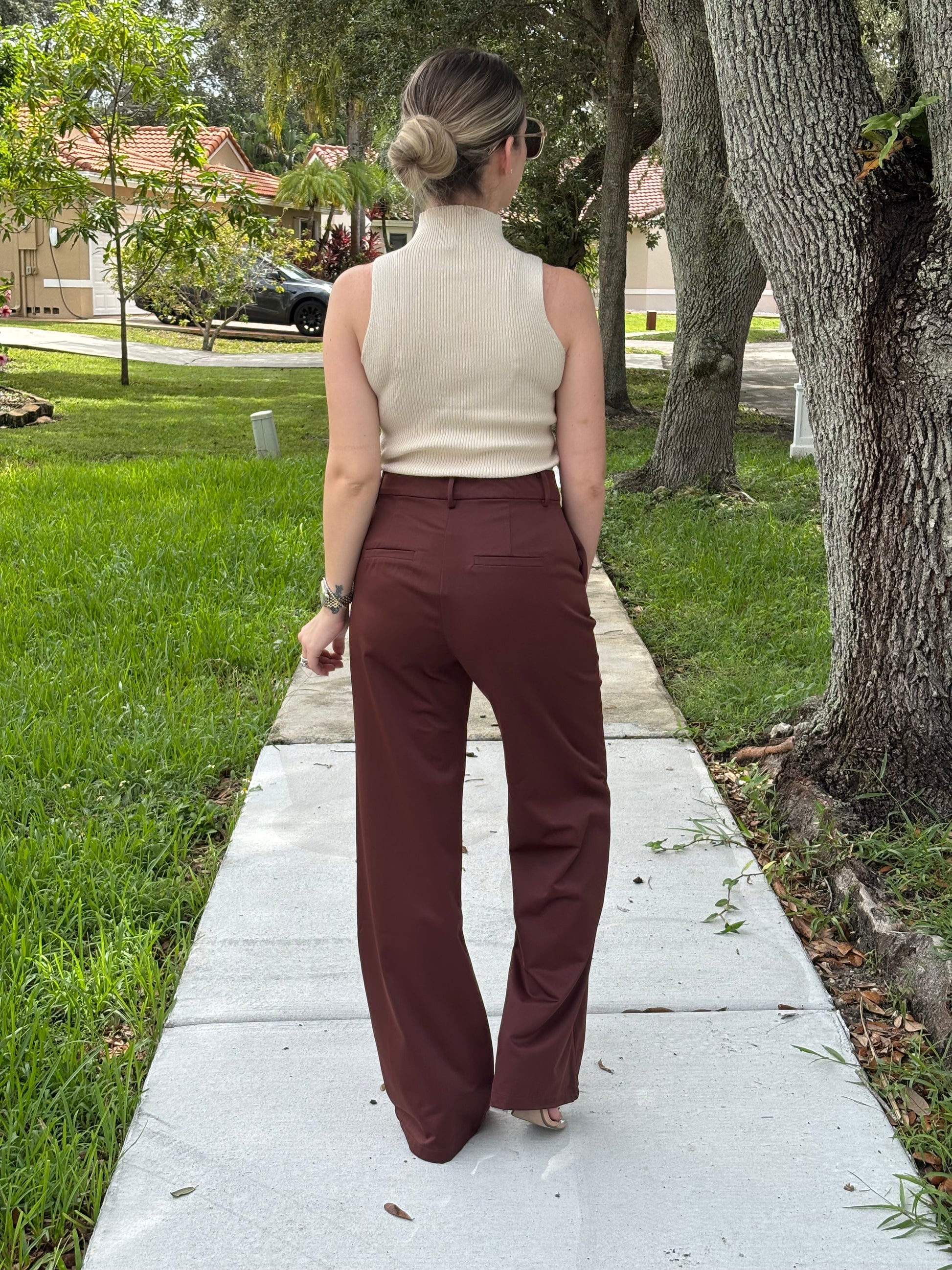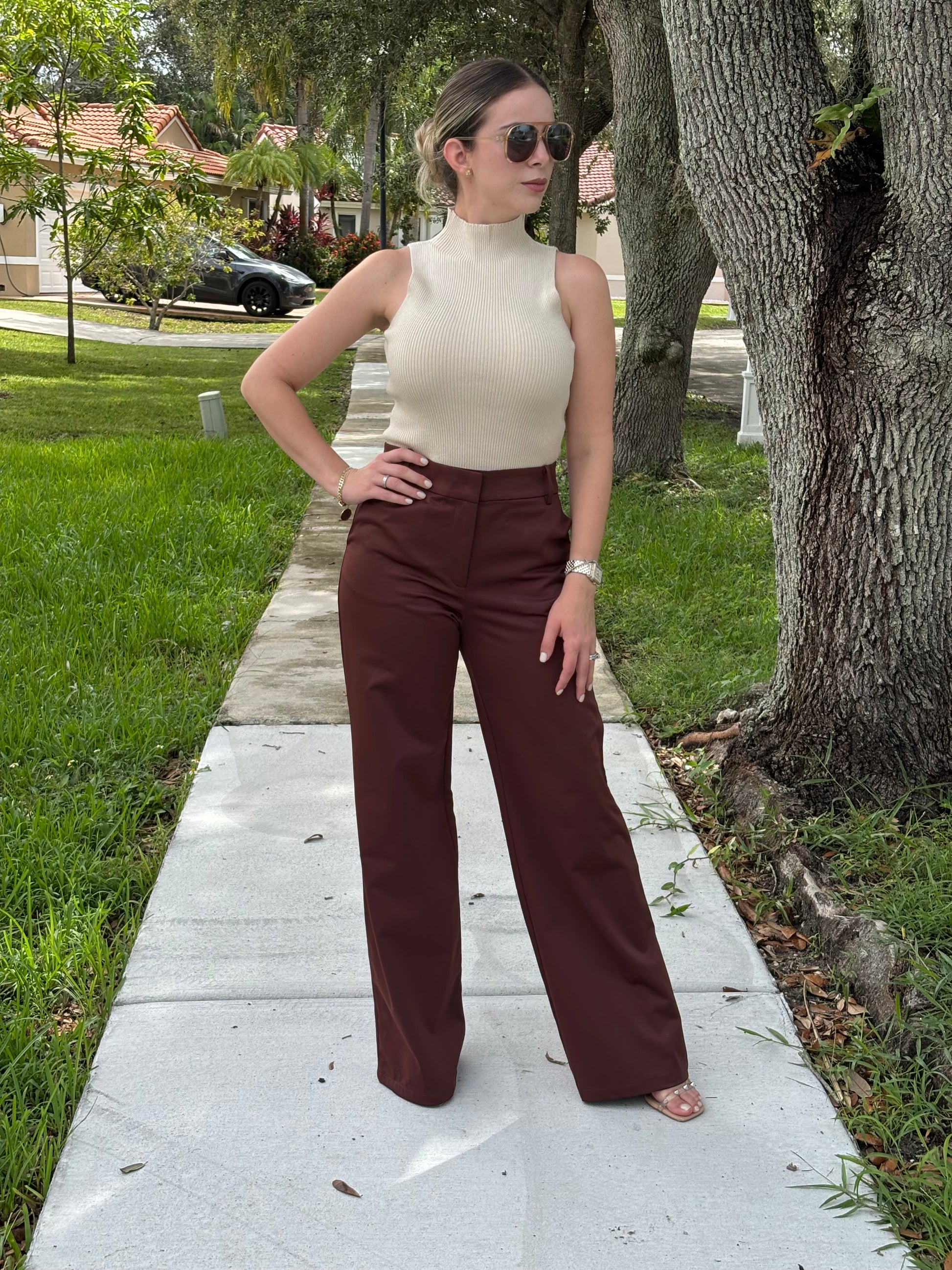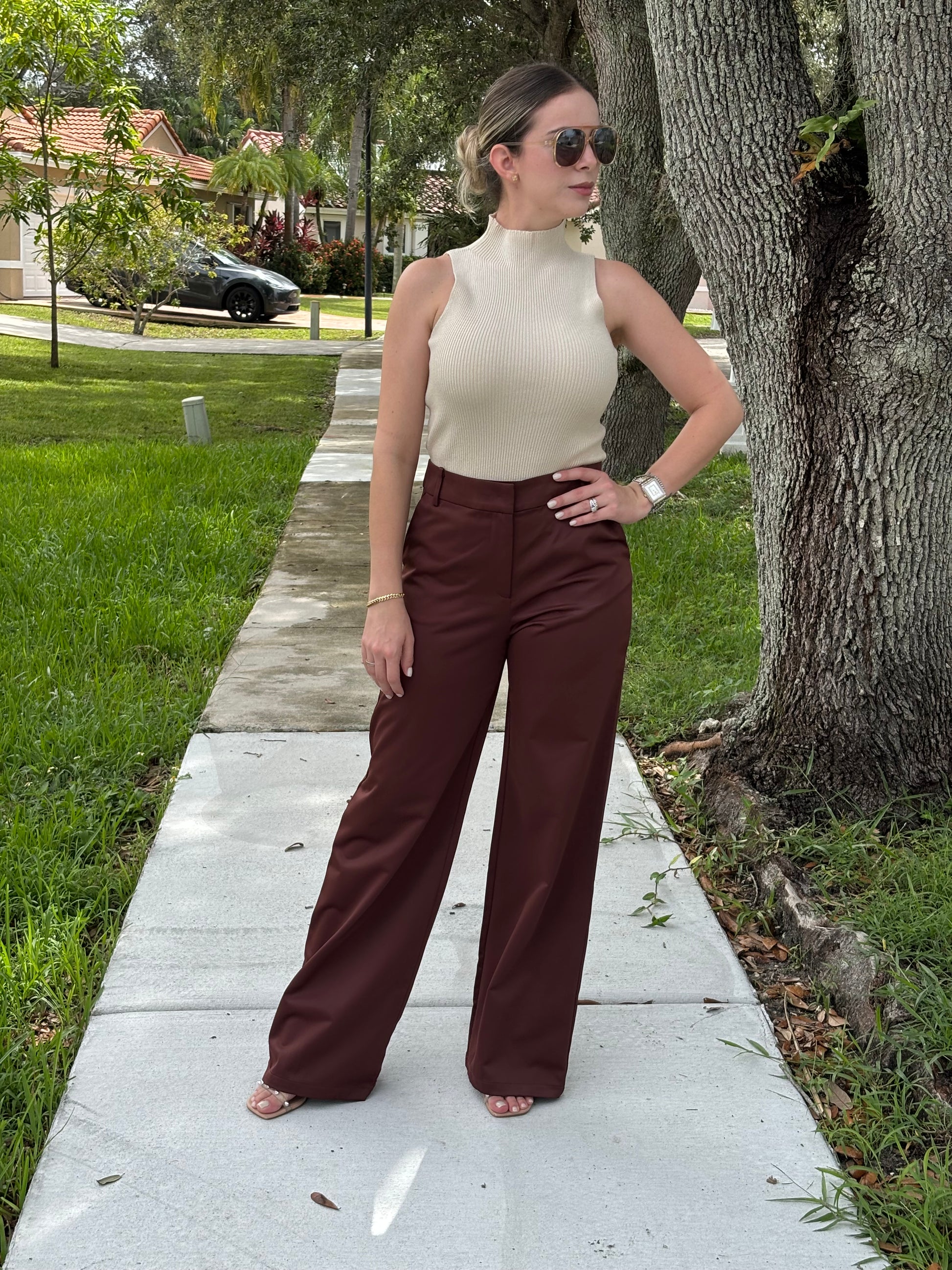 High waist wide leg pants. Model wearing size small. True to size